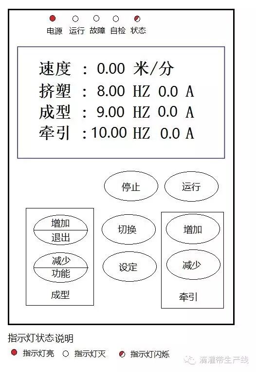 “同步旋钮” 同步增大或者减少成型 牵引 挤塑机的速度 (当前值改变).